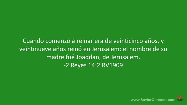 Cuando comenzó á reinar era de veinticinco años, y veintinueve años reinó en Jerusalem: el nombre de su madre fué Joaddan, de Jerusalem. -2 Reyes 14:2 RV1909