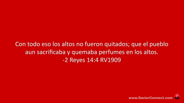 Con todo eso los altos no fueron quitados; que el pueblo aun sacrificaba y quemaba perfumes en los altos. -2 Reyes 14:4 RV1909