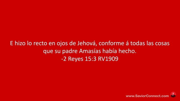 E hizo lo recto en ojos de Jehová, conforme á todas las cosas que su padre Amasías había hecho. -2 Reyes 15:3 RV1909