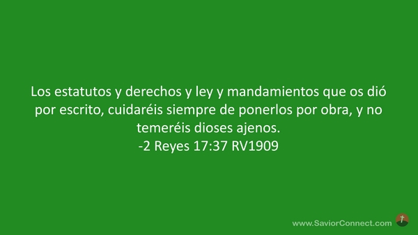 Los estatutos y derechos y ley y mandamientos que os dió por escrito, cuidaréis siempre de ponerlos por obra, y no temeréis dioses ajenos. -2 Reyes 17:37 RV1909