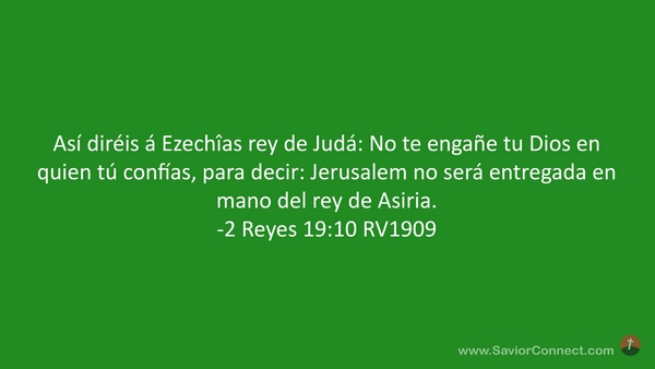 Así diréis á Ezechîas rey de Judá: No te engañe tu Dios en quien tú confías, para decir: Jerusalem no será entregada en mano del rey de Asiria. -2 Reyes 19:10 RV1909