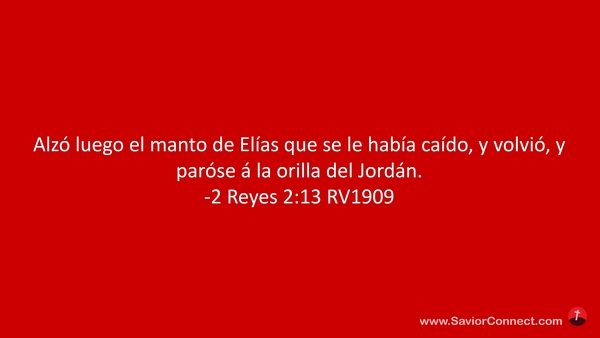 Alzó luego el manto de Elías que se le había caído, y volvió, y paróse á la orilla del Jordán. -2 Reyes 2:13 RV1909