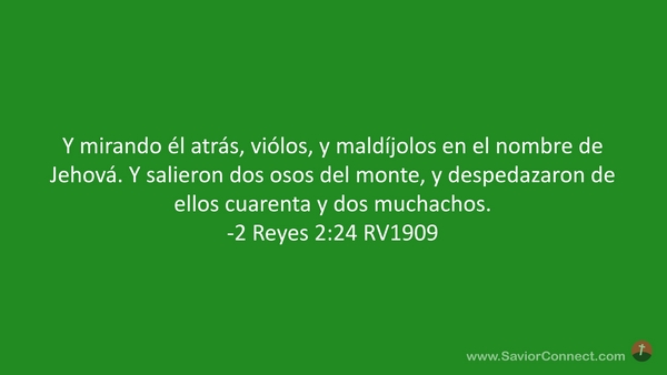 Y mirando él atrás, viólos, y maldíjolos en el nombre de Jehová. Y salieron dos osos del monte, y despedazaron de ellos cuarenta y dos muchachos. -2 Reyes 2:24 RV1909