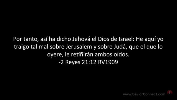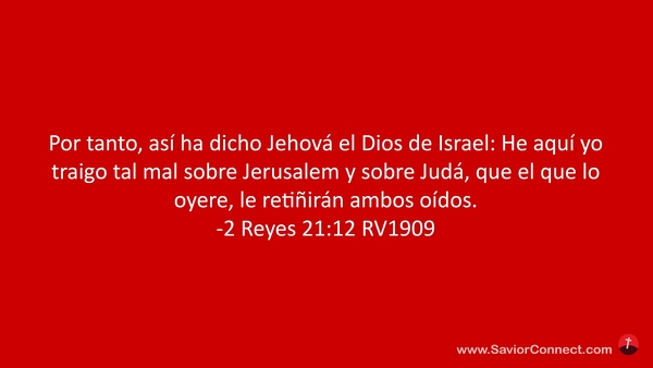Por tanto, así ha dicho Jehová el Dios de Israel: He aquí yo traigo tal mal sobre Jerusalem y sobre Judá, que el que lo oyere, le retiñirán ambos oídos. -2 Reyes 21:12 RV1909