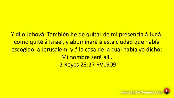 Y dijo Jehová: También he de quitar de mi presencia á Judá, como quité á Israel, y abominaré á esta ciudad que había escogido, á Jerusalem, y á la casa de la cual había yo dicho: Mi nombre será allí. -2 Reyes 23:27 RV1909