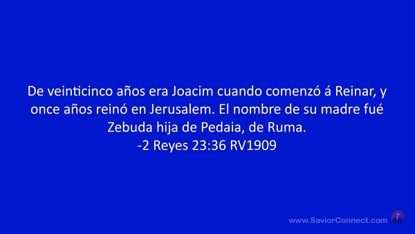 De veinticinco años era Joacim cuando comenzó á Reinar, y once años reinó en Jerusalem. El nombre de su madre fué Zebuda hija de Pedaia, de Ruma. -2 Reyes 23:36 RV1909