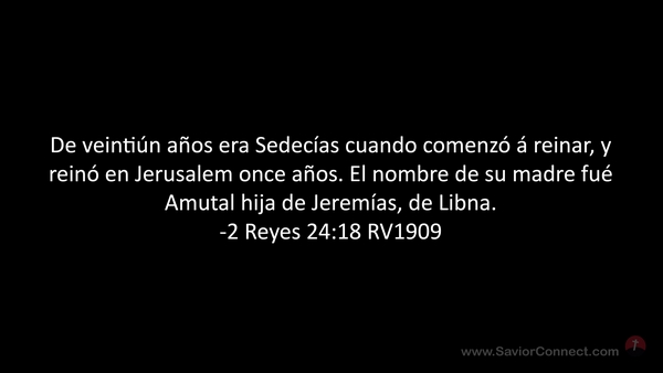 De veintiún años era Sedecías cuando comenzó á reinar, y reinó en Jerusalem once años. El nombre de su madre fué Amutal hija de Jeremías, de Libna. -2 Reyes 24:18 RV1909