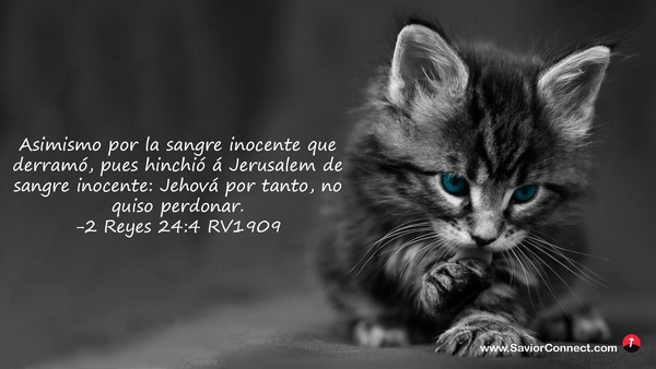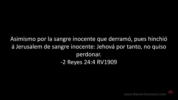 Asimismo por la sangre inocente que derramó, pues hinchió á Jerusalem de sangre inocente: Jehová por tanto, no quiso perdonar. -2 Reyes 24:4 RV1909