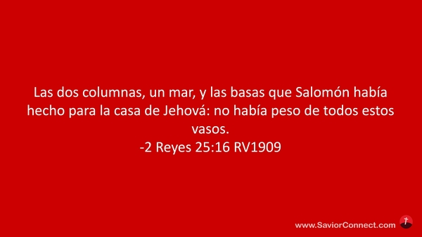 Las dos columnas, un mar, y las basas que Salomón había hecho para la casa de Jehová: no había peso de todos estos vasos. -2 Reyes 25:16 RV1909