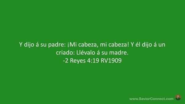Y dijo á su padre: ¡Mi cabeza, mi cabeza! Y él dijo á un criado: Llévalo á su madre. -2 Reyes 4:19 RV1909
