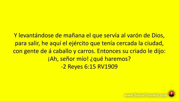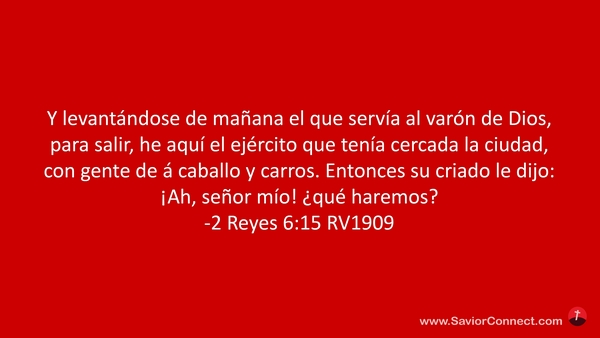 Y levantándose de mañana el que servía al varón de Dios, para salir, he aquí el ejército que tenía cercada la ciudad, con gente de á caballo y carros. Entonces su criado le dijo: ¡Ah, señor mío! ¿qué haremos? -2 Reyes 6:15 RV1909