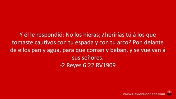 Y él le respondió: No los hieras; ¿herirías tú á los que tomaste cautivos con tu espada y con tu arco? Pon delante de ellos pan y agua, para que coman y beban, y se vuelvan á sus señores. -2 Reyes 6:22 RV1909