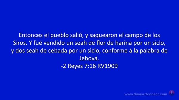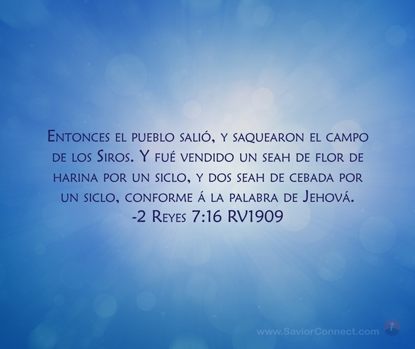 Entonces el pueblo salió, y saquearon el campo de los Siros. Y fué vendido un seah de flor de harina por un siclo, y dos seah de cebada por un siclo, conforme á la palabra de Jehová. -2 Reyes 7:16 RV1909