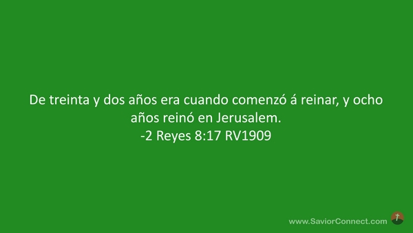 De treinta y dos años era cuando comenzó á reinar, y ocho años reinó en Jerusalem. -2 Reyes 8:17 RV1909