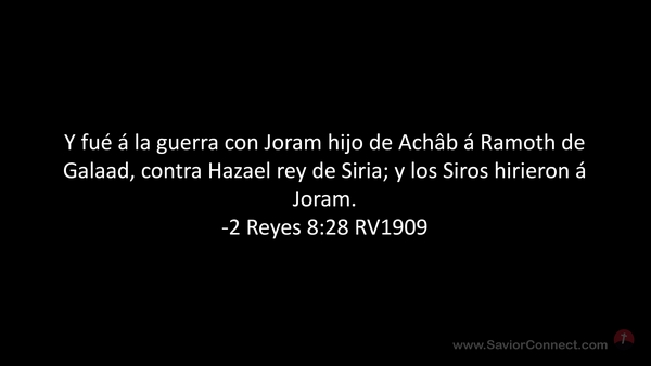 Y fué á la guerra con Joram hijo de Achâb á Ramoth de Galaad, contra Hazael rey de Siria; y los Siros hirieron á Joram. -2 Reyes 8:28 RV1909