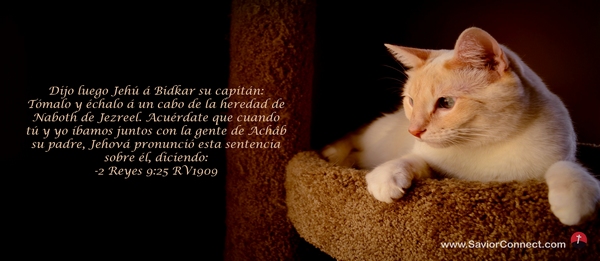 Dijo luego Jehú á Bidkar su capitán: Tómalo y échalo á un cabo de la heredad de Naboth de Jezreel. Acuérdate que cuando tú y yo íbamos juntos con la gente de Achâb su padre, Jehová pronunció esta sentencia sobre él, diciendo: -2 Reyes 9:25 RV1909