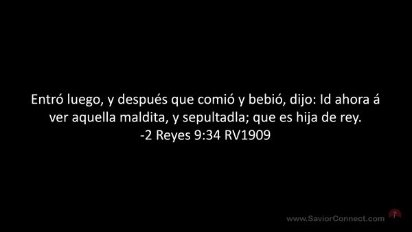 Entró luego, y después que comió y bebió, dijo: Id ahora á ver aquella maldita, y sepultadla; que es hija de rey. -2 Reyes 9:34 RV1909