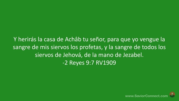 Y herirás la casa de Achâb tu señor, para que yo vengue la sangre de mis siervos los profetas, y la sangre de todos los siervos de Jehová, de la mano de Jezabel. -2 Reyes 9:7 RV1909
