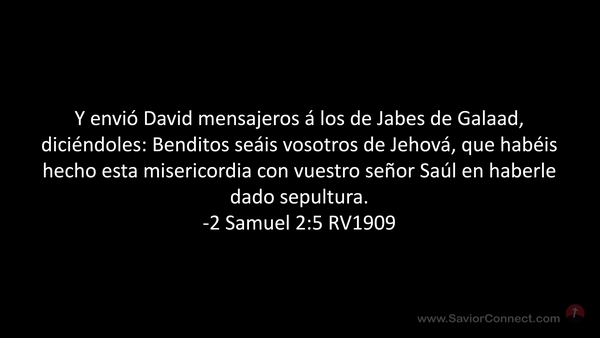Y envió David mensajeros á los de Jabes de Galaad, diciéndoles: Benditos seáis vosotros de Jehová, que habéis hecho esta misericordia con vuestro señor Saúl en haberle dado sepultura. -2 Samuel 2:5 RV1909