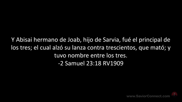 Y Abisai hermano de Joab, hijo de Sarvia, fué el principal de los tres; el cual alzó su lanza contra trescientos, que mató; y tuvo nombre entre los tres. -2 Samuel 23:18 RV1909
