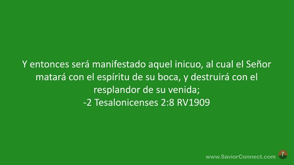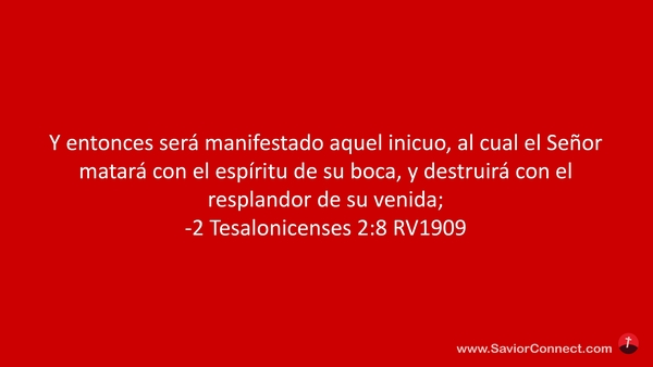 Y entonces será manifestado aquel inicuo, al cual el Señor matará con el espíritu de su boca, y destruirá con el resplandor de su venida; -2 Tesalonicenses 2:8 RV1909