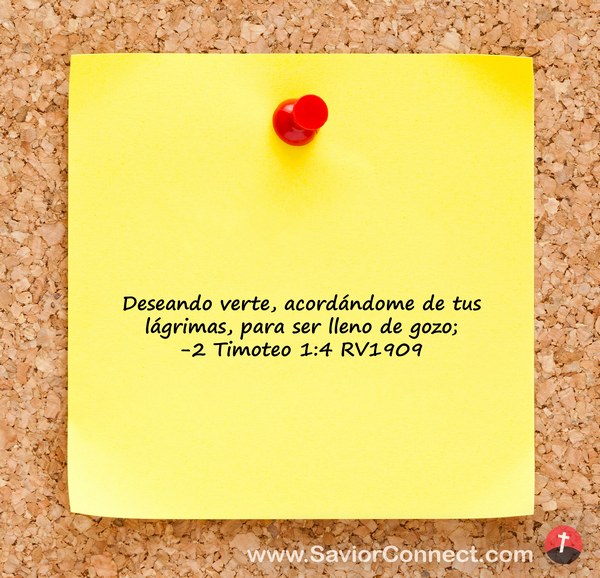 Deseando verte, acordándome de tus lágrimas, para ser lleno de gozo; -2 Timoteo 1:4 RV1909