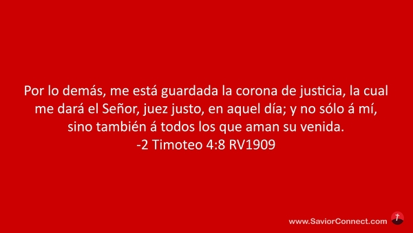 Por lo demás, me está guardada la corona de justicia, la cual me dará el Señor, juez justo, en aquel día; y no sólo á mí, sino también á todos los que aman su venida. -2 Timoteo 4:8 RV1909