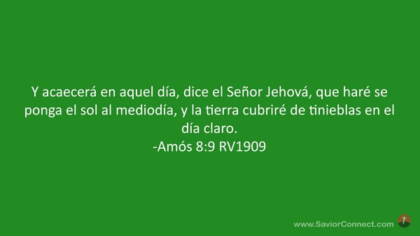 Y acaecerá en aquel día, dice el Señor Jehová, que haré se ponga el sol al mediodía, y la tierra cubriré de tinieblas en el día claro. -Amós 8:9 RV1909
