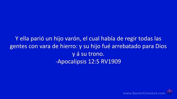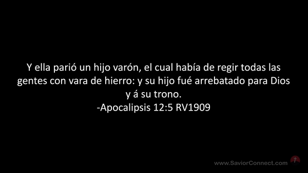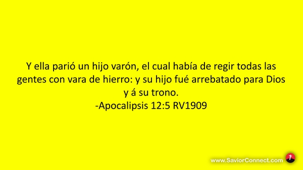 Y ella parió un hijo varón, el cual había de regir todas las gentes con vara de hierro: y su hijo fué arrebatado para Dios y á su trono. -Apocalipsis 12:5 RV1909