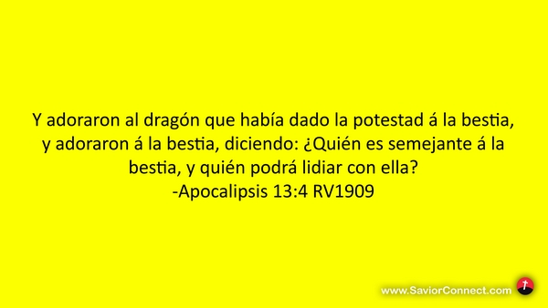 Y adoraron al dragón que había dado la potestad á la bestia, y adoraron á la bestia, diciendo: ¿Quién es semejante á la bestia, y quién podrá lidiar con ella? -Apocalipsis 13:4 RV1909