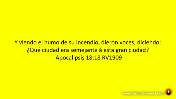 Y viendo el humo de su incendio, dieron voces, diciendo: ¿Qué ciudad era semejante á esta gran ciudad? -Apocalipsis 18:18 RV1909