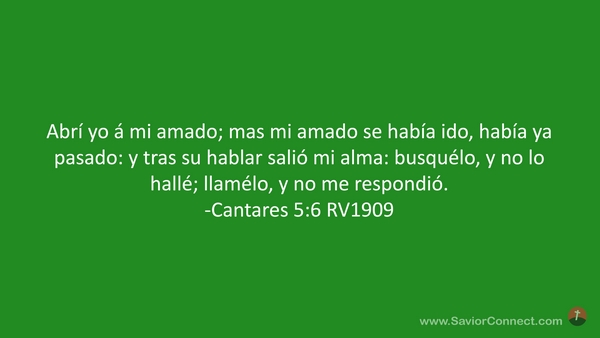 Abrí yo á mi amado; mas mi amado se había ido, había ya pasado: y tras su hablar salió mi alma: busquélo, y no lo hallé; llamélo, y no me respondió. -Cantares 5:6 RV1909