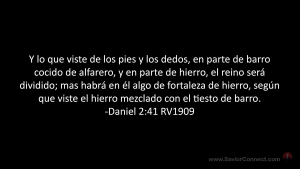 Y lo que viste de los pies y los dedos, en parte de barro cocido de alfarero, y en parte de hierro, el reino será dividido; mas habrá en él algo de fortaleza de hierro, según que viste el hierro mezclado con el tiesto de barro. -Daniel 2:41 RV1909