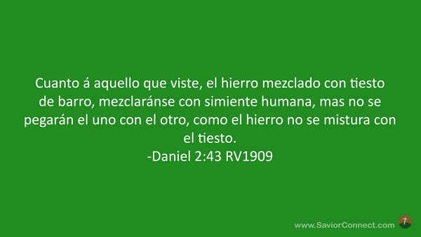 Cuanto á aquello que viste, el hierro mezclado con tiesto de barro, mezclaránse con simiente humana, mas no se pegarán el uno con el otro, como el hierro no se mistura con el tiesto. -Daniel 2:43 RV1909