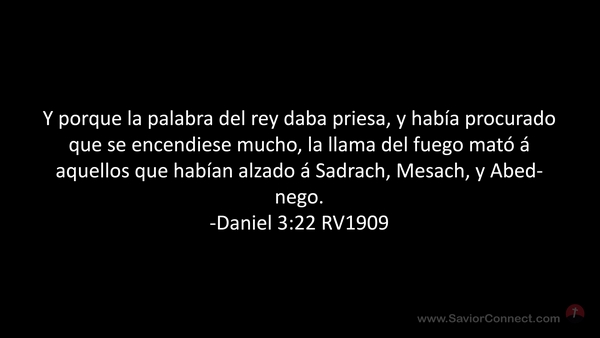 Y porque la palabra del rey daba priesa, y había procurado que se encendiese mucho, la llama del fuego mató á aquellos que habían alzado á Sadrach, Mesach, y Abed-nego. -Daniel 3:22 RV1909