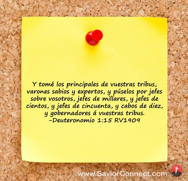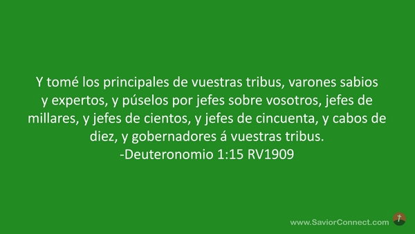 Y tomé los principales de vuestras tribus, varones sabios y expertos, y púselos por jefes sobre vosotros, jefes de millares, y jefes de cientos, y jefes de cincuenta, y cabos de diez, y gobernadores á vuestras tribus. -Deuteronomio 1:15 RV1909