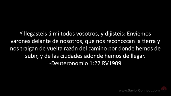 Y llegasteis á mí todos vosotros, y dijisteis: Enviemos varones delante de nosotros, que nos reconozcan la tierra y nos traigan de vuelta razón del camino por donde hemos de subir, y de las ciudades adonde hemos de llegar. -Deuteronomio 1:22 RV1909