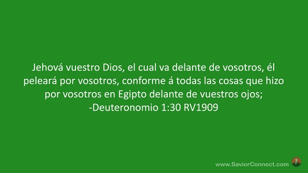 Jehová vuestro Dios, el cual va delante de vosotros, él peleará por vosotros, conforme á todas las cosas que hizo por vosotros en Egipto delante de vuestros ojos; -Deuteronomio 1:30 RV1909
