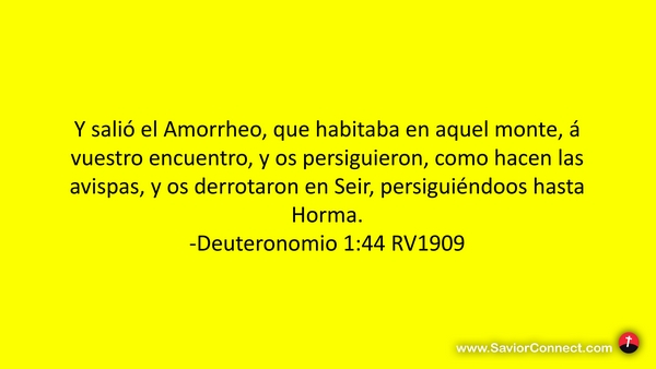 Y salió el Amorrheo, que habitaba en aquel monte, á vuestro encuentro, y os persiguieron, como hacen las avispas, y os derrotaron en Seir, persiguiéndoos hasta Horma. -Deuteronomio 1:44 RV1909