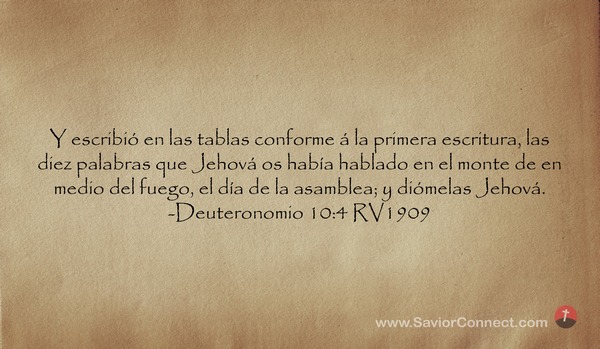 Y escribió en las tablas conforme á la primera escritura, las diez palabras que Jehová os había hablado en el monte de en medio del fuego, el día de la asamblea; y diómelas Jehová. -Deuteronomio 10:4 RV1909