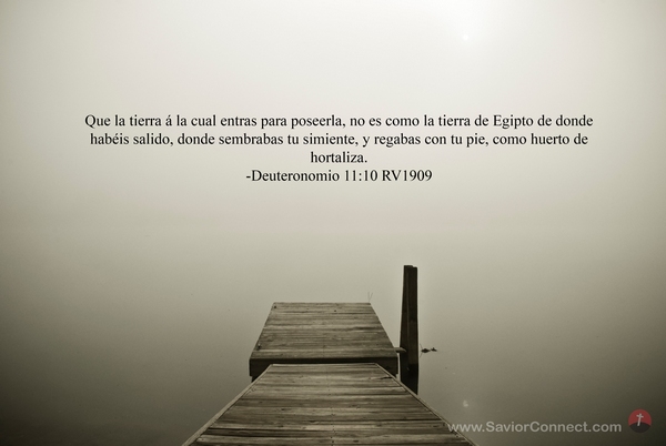 Que la tierra á la cual entras para poseerla, no es como la tierra de Egipto de donde habéis salido, donde sembrabas tu simiente, y regabas con tu pie, como huerto de hortaliza. -Deuteronomio 11:10 RV1909