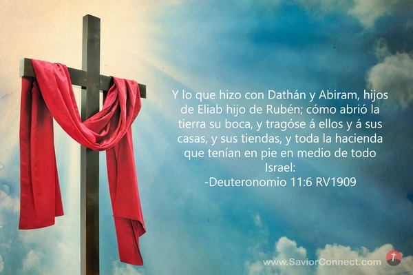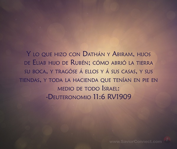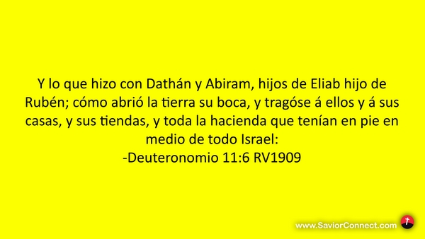Y lo que hizo con Dathán y Abiram, hijos de Eliab hijo de Rubén; cómo abrió la tierra su boca, y tragóse á ellos y á sus casas, y sus tiendas, y toda la hacienda que tenían en pie en medio de todo Israel: -Deuteronomio 11:6 RV1909