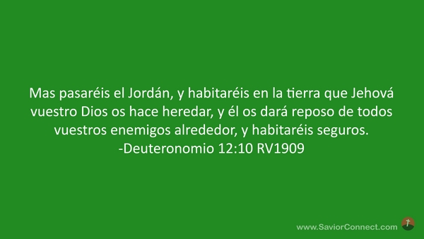 Mas pasaréis el Jordán, y habitaréis en la tierra que Jehová vuestro Dios os hace heredar, y él os dará reposo de todos vuestros enemigos alrededor, y habitaréis seguros. -Deuteronomio 12:10 RV1909