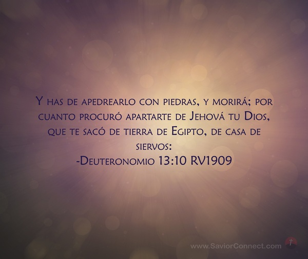 Y has de apedrearlo con piedras, y morirá; por cuanto procuró apartarte de Jehová tu Dios, que te sacó de tierra de Egipto, de casa de siervos: -Deuteronomio 13:10 RV1909