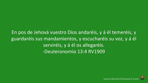 En pos de Jehová vuestro Dios andaréis, y á él temeréis, y guardaréis sus mandamientos, y escucharéis su voz, y á él serviréis, y á él os allegaréis. -Deuteronomio 13:4 RV1909