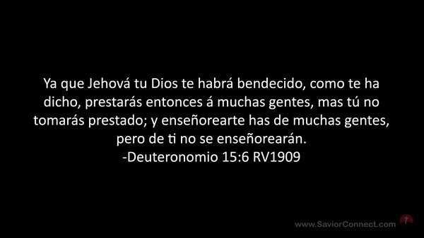 Ya que Jehová tu Dios te habrá bendecido, como te ha dicho, prestarás entonces á muchas gentes, mas tú no tomarás prestado; y enseñorearte has de muchas gentes, pero de ti no se enseñorearán. -Deuteronomio 15:6 RV1909