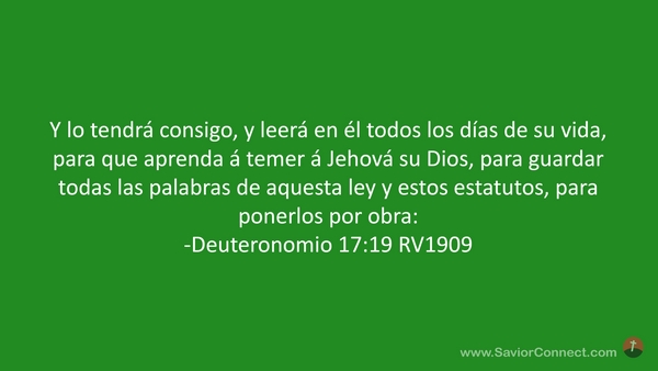Y lo tendrá consigo, y leerá en él todos los días de su vida, para que aprenda á temer á Jehová su Dios, para guardar todas las palabras de aquesta ley y estos estatutos, para ponerlos por obra: -Deuteronomio 17:19 RV1909