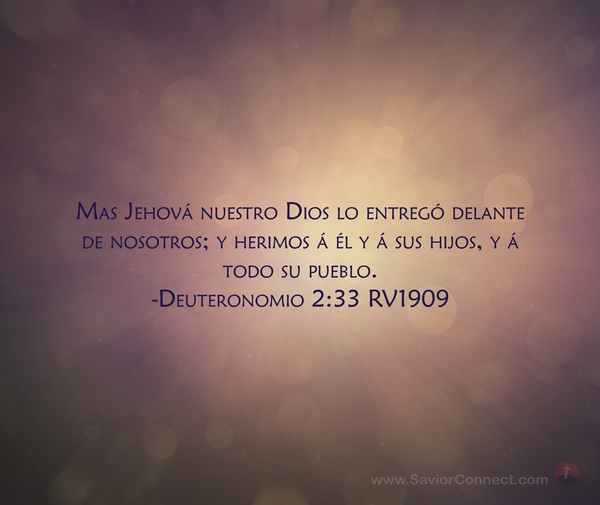 Mas Jehová nuestro Dios lo entregó delante de nosotros; y herimos á él y á sus hijos, y á todo su pueblo. -Deuteronomio 2:33 RV1909