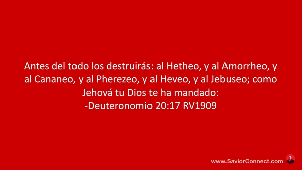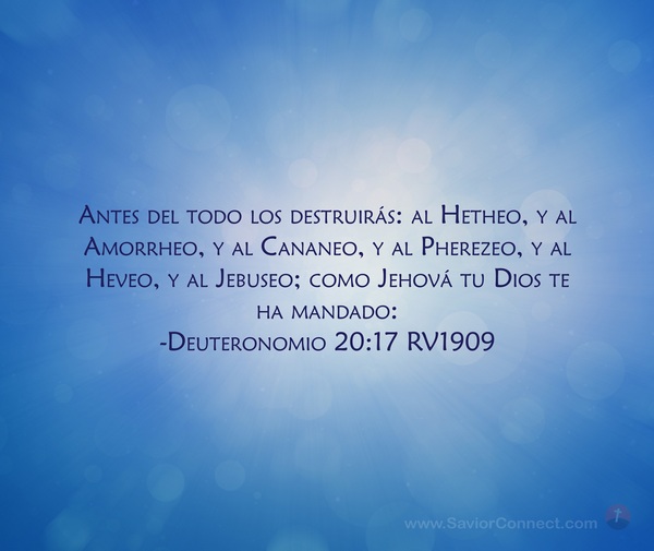 Antes del todo los destruirás: al Hetheo, y al Amorrheo, y al Cananeo, y al Pherezeo, y al Heveo, y al Jebuseo; como Jehová tu Dios te ha mandado: -Deuteronomio 20:17 RV1909