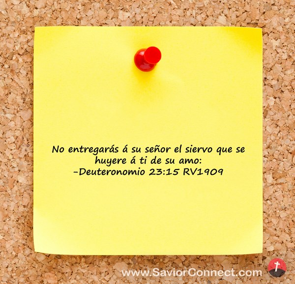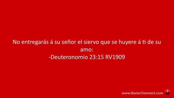No entregarás á su señor el siervo que se huyere á ti de su amo: -Deuteronomio 23:15 RV1909